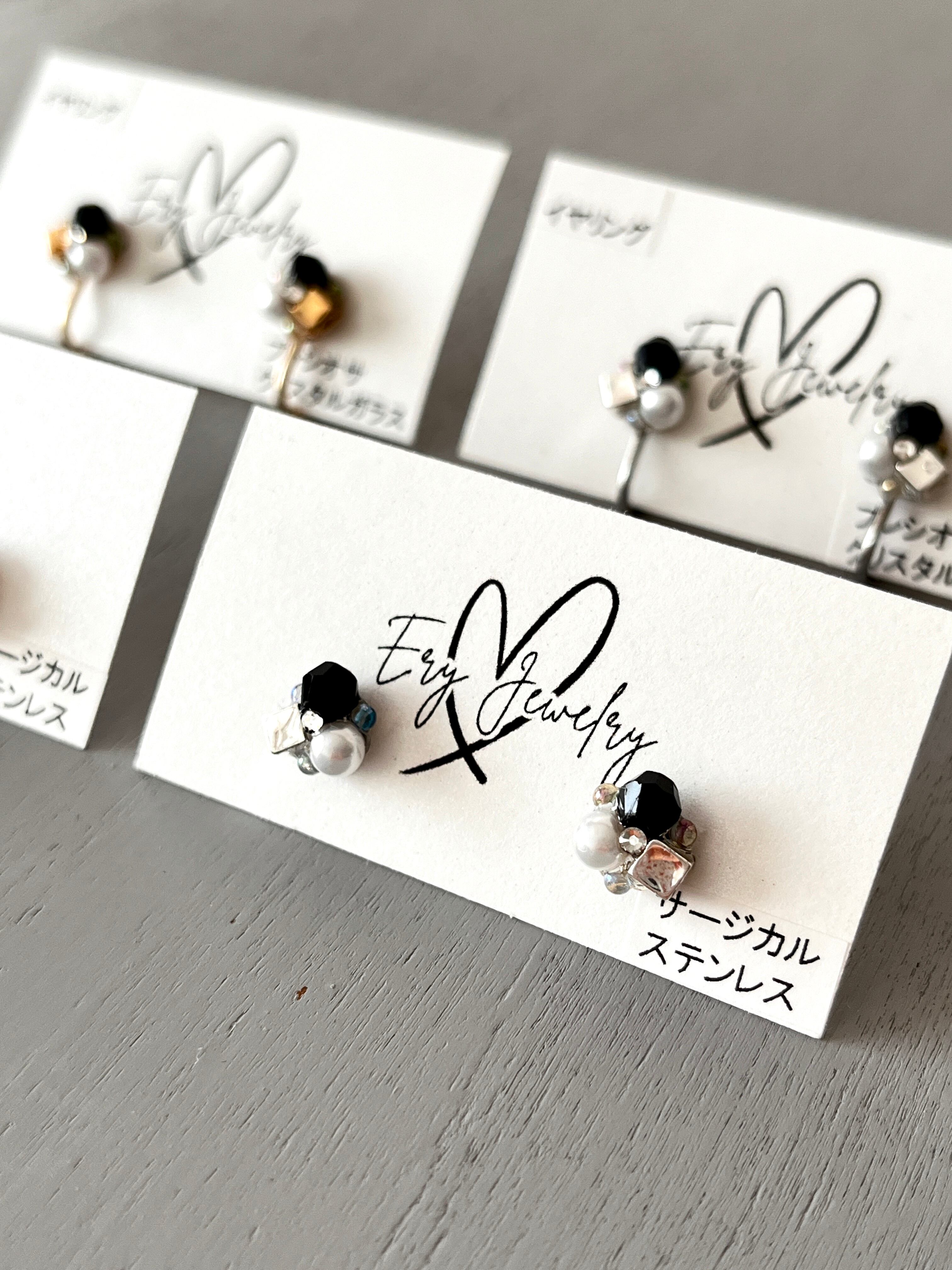 黒×白×メタルで魅了する小粒ピアス・イヤリング