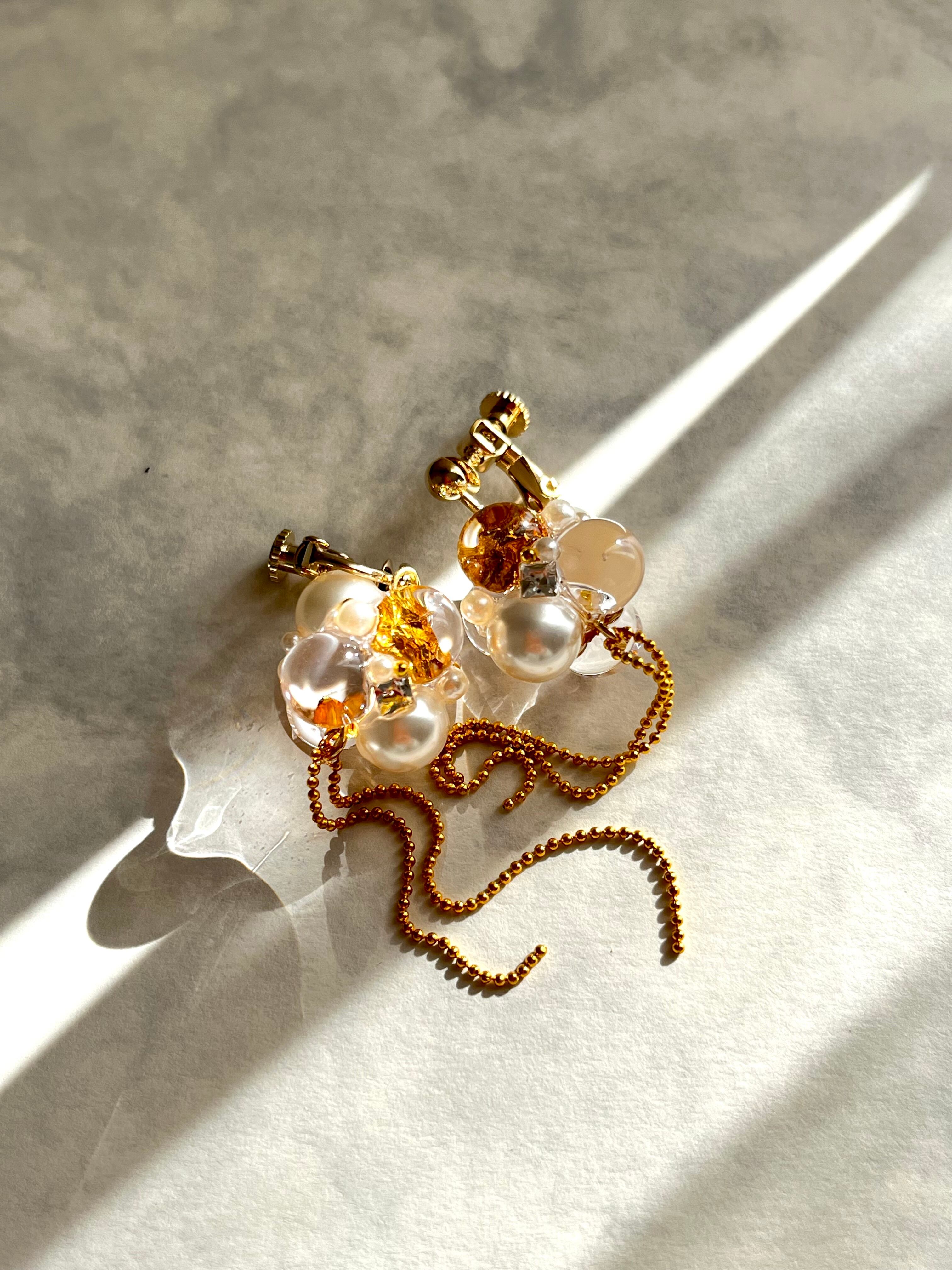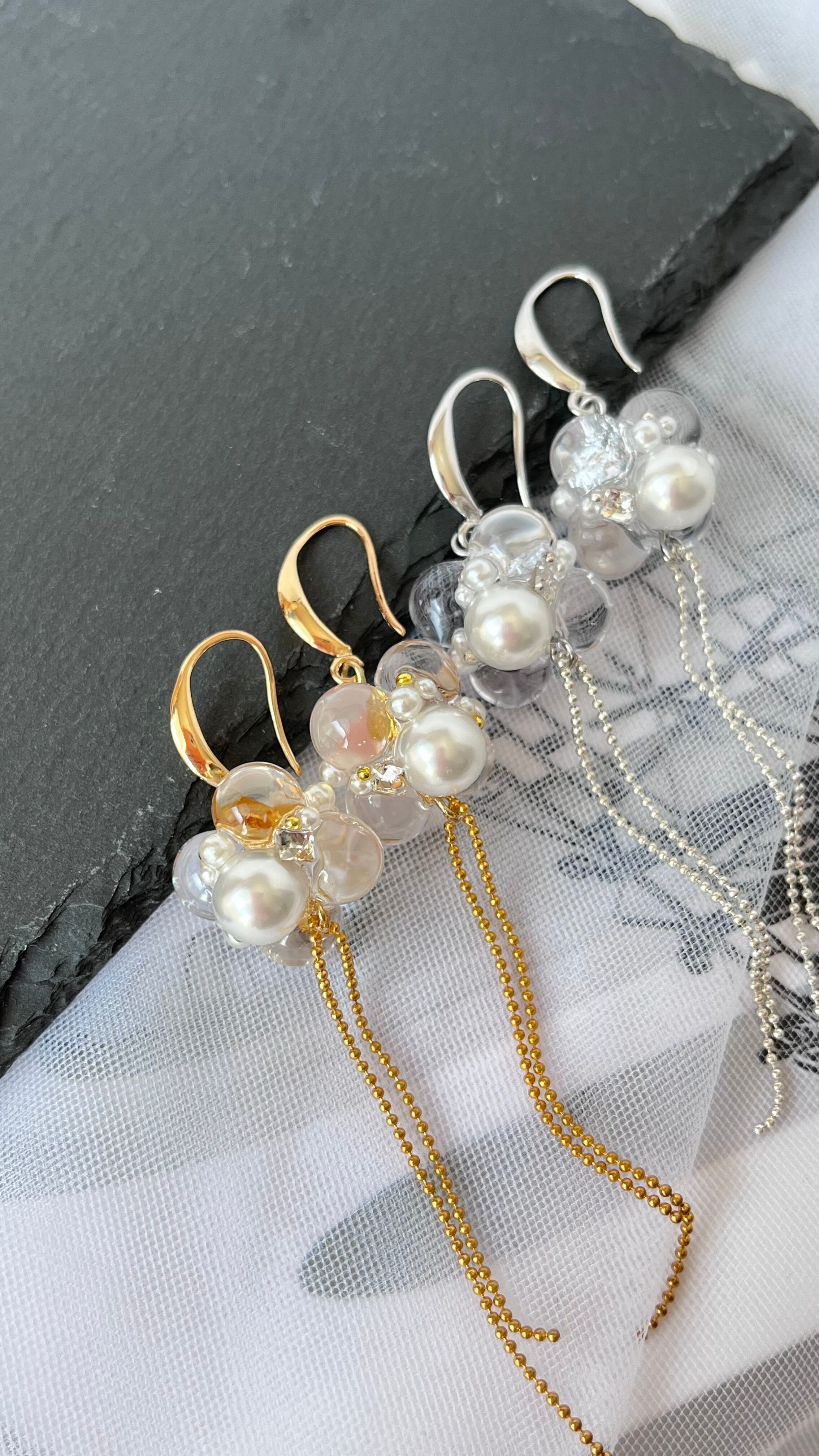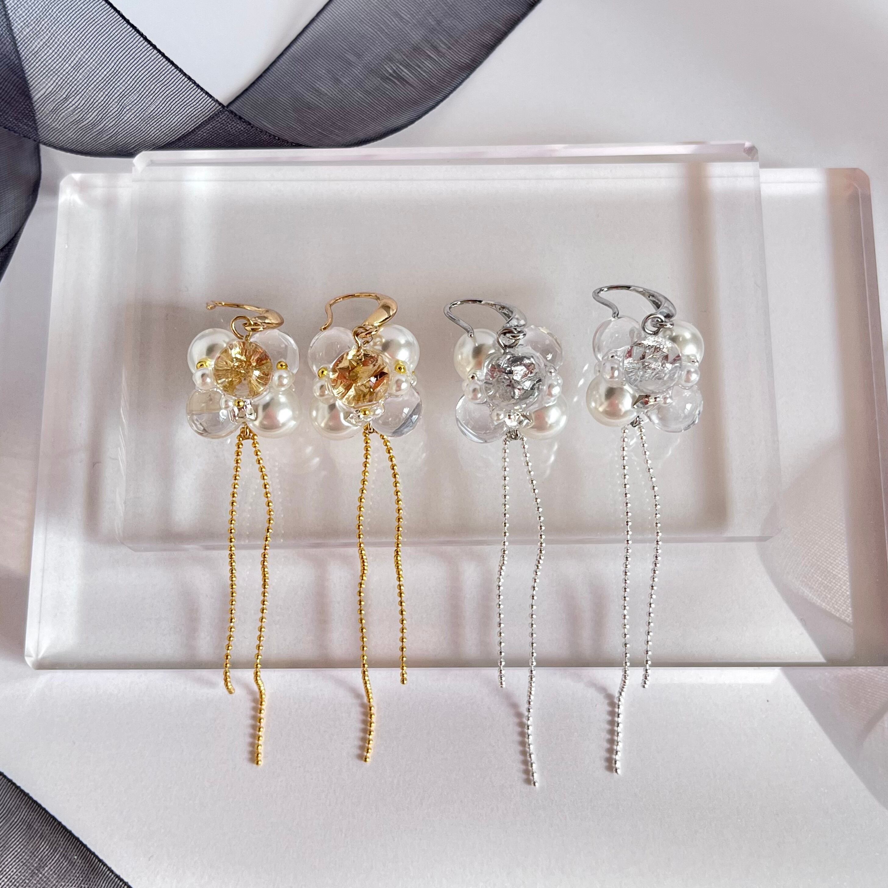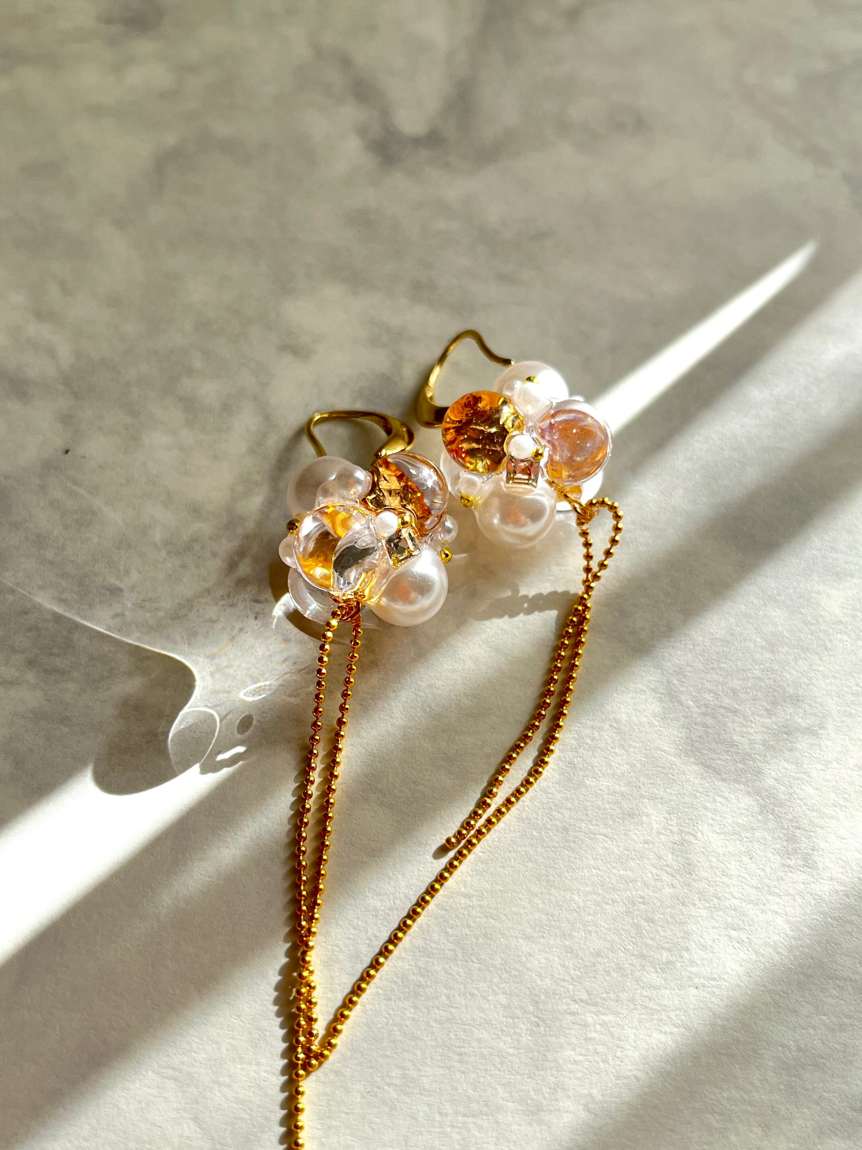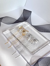 キラッと奥から光を反射し、クリアなパーツはツヤツヤに仕上げてあるので、それだけで輝き、耳元を華やかに演出してくれます。