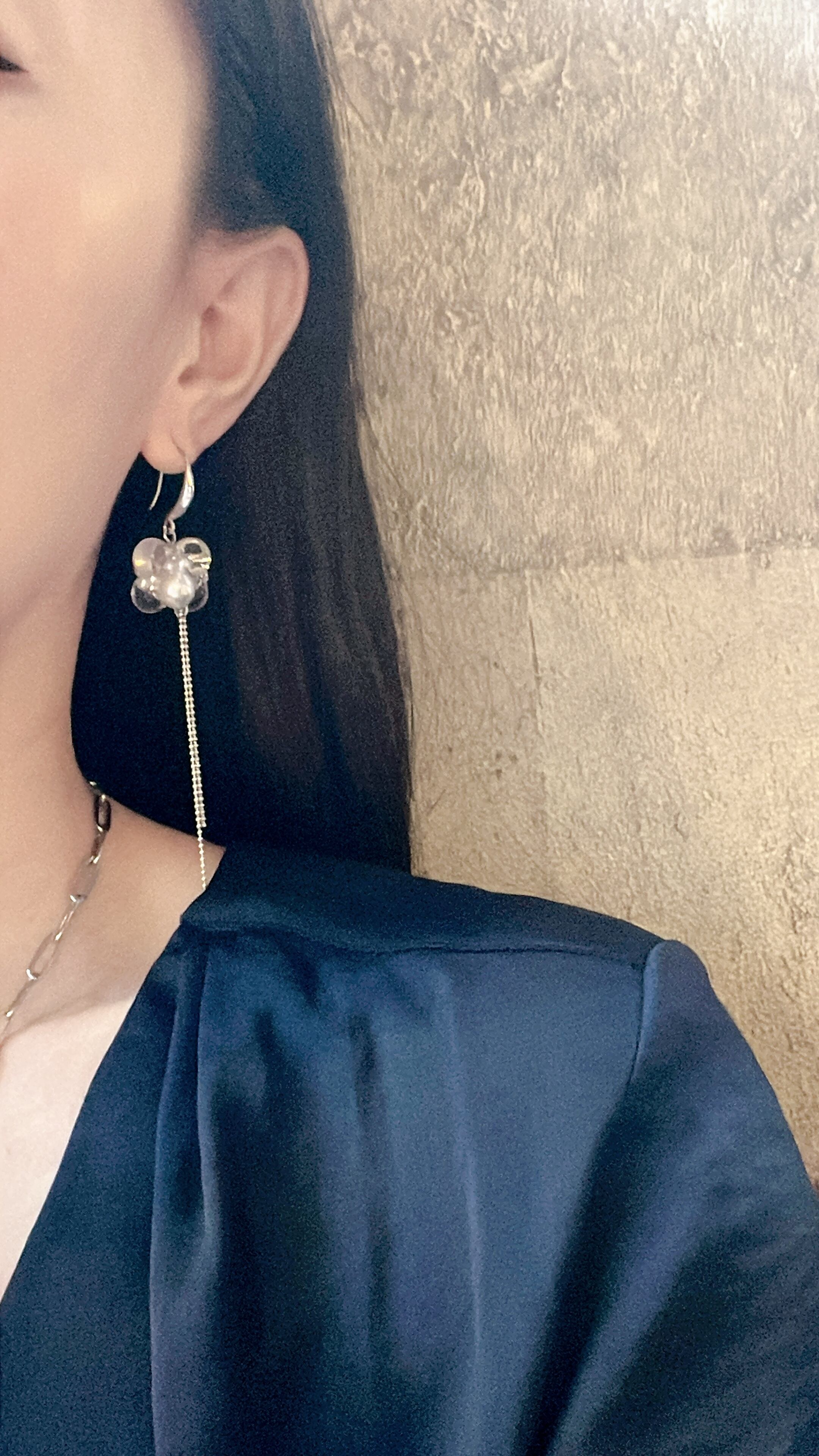 しなやかな女性らしさを表現する為に、あえて2本の長さを変えて付けたチェーンは、耳元でシャラリと揺れ、あなたの上品さをUPしてくれます。