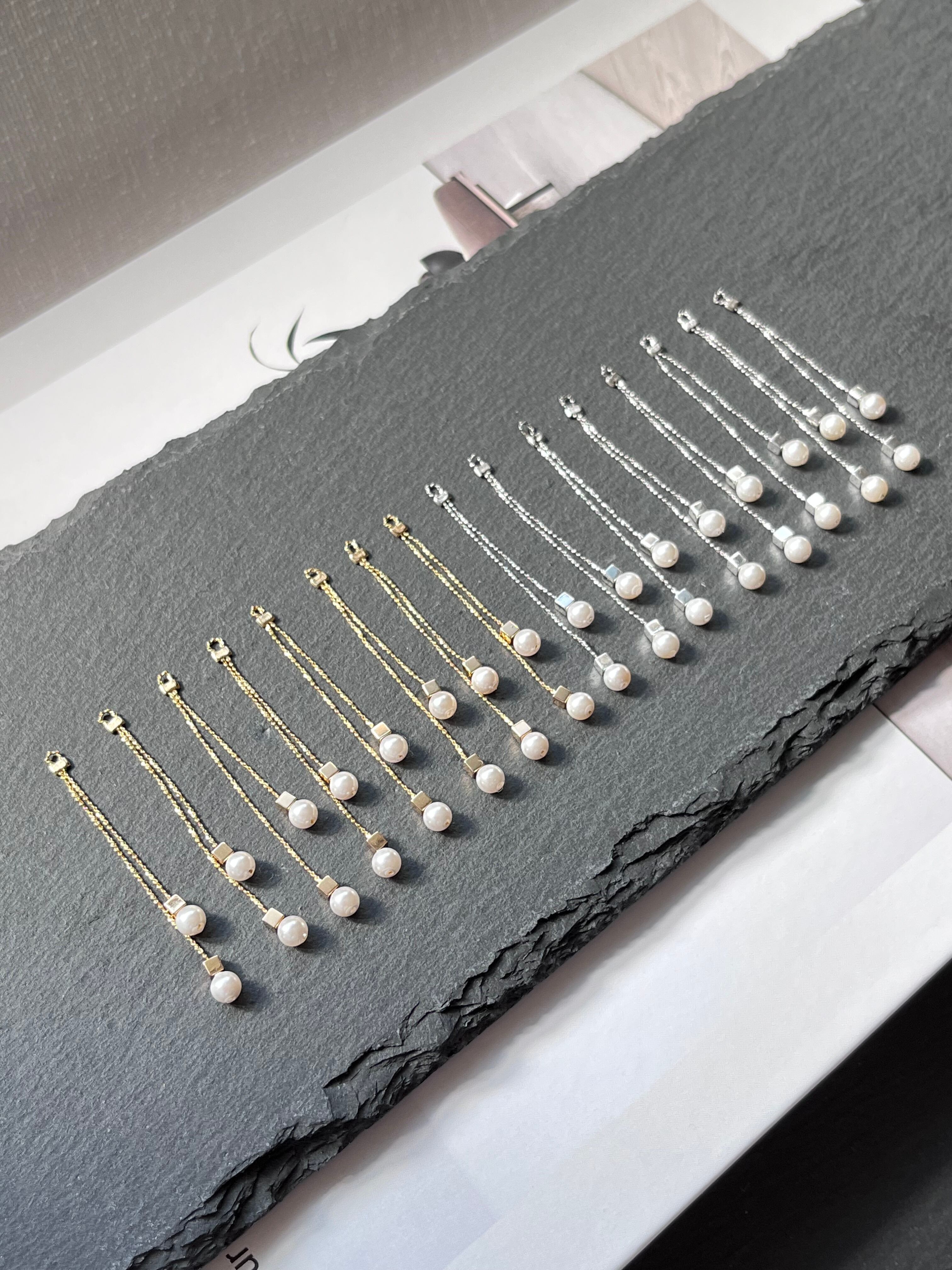 小粒な四角いメタルパーツをパールの上にプラス。ちょこんと足すことにより