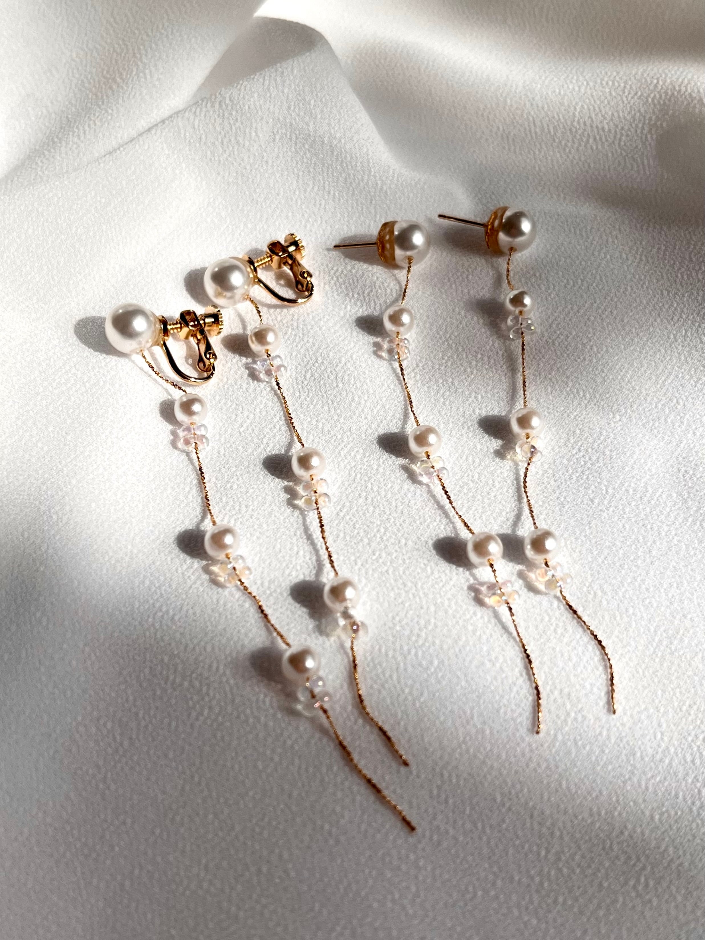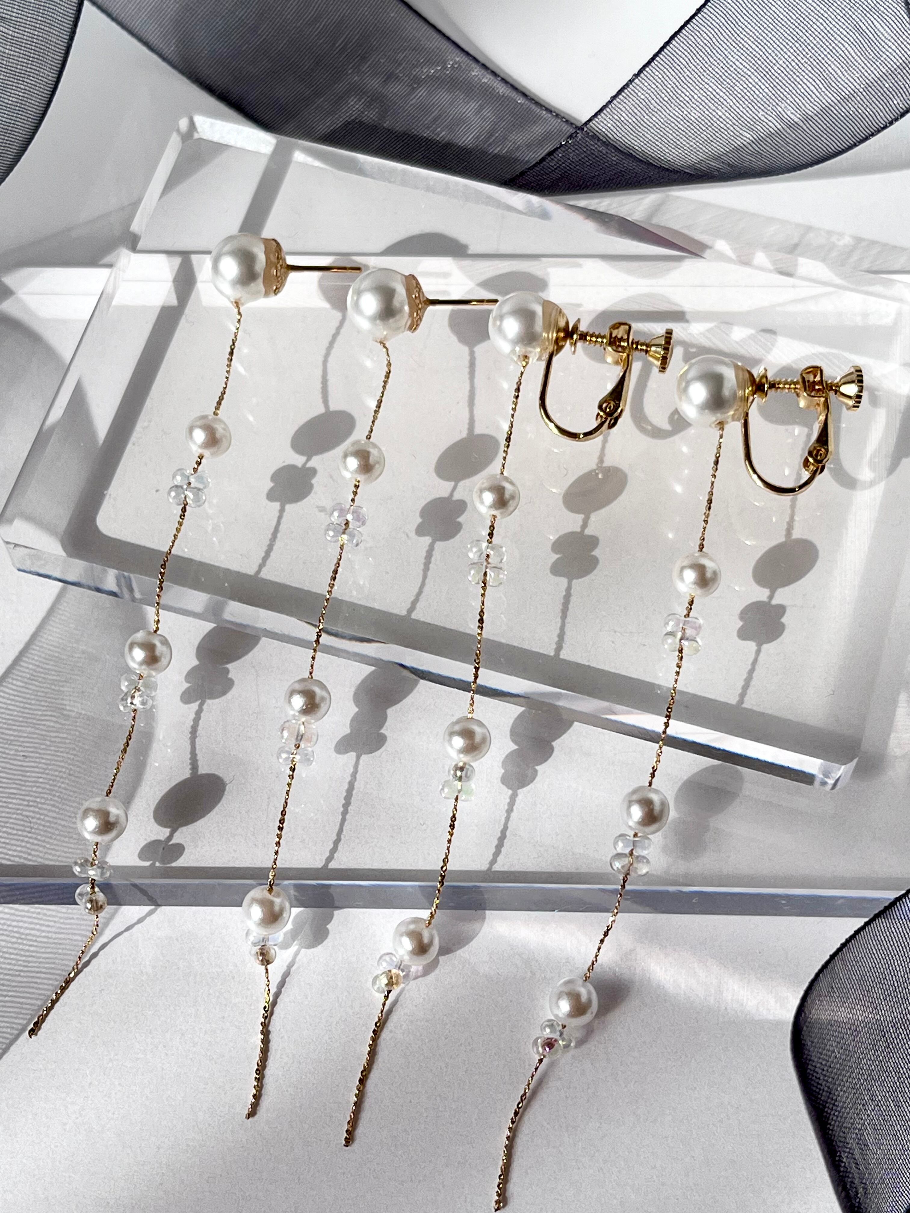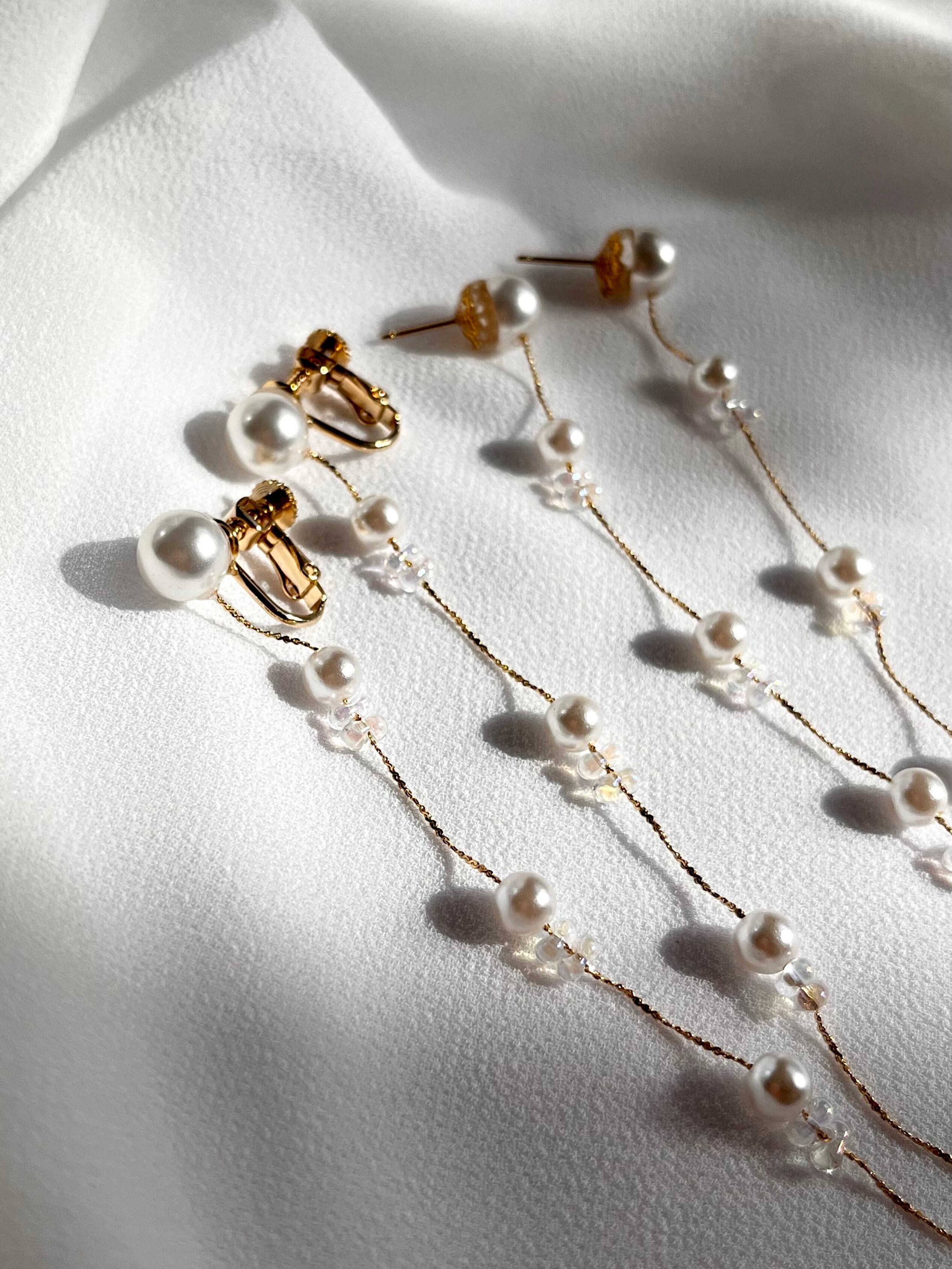 優しく揺れるパールのピアス・イヤリングです。
