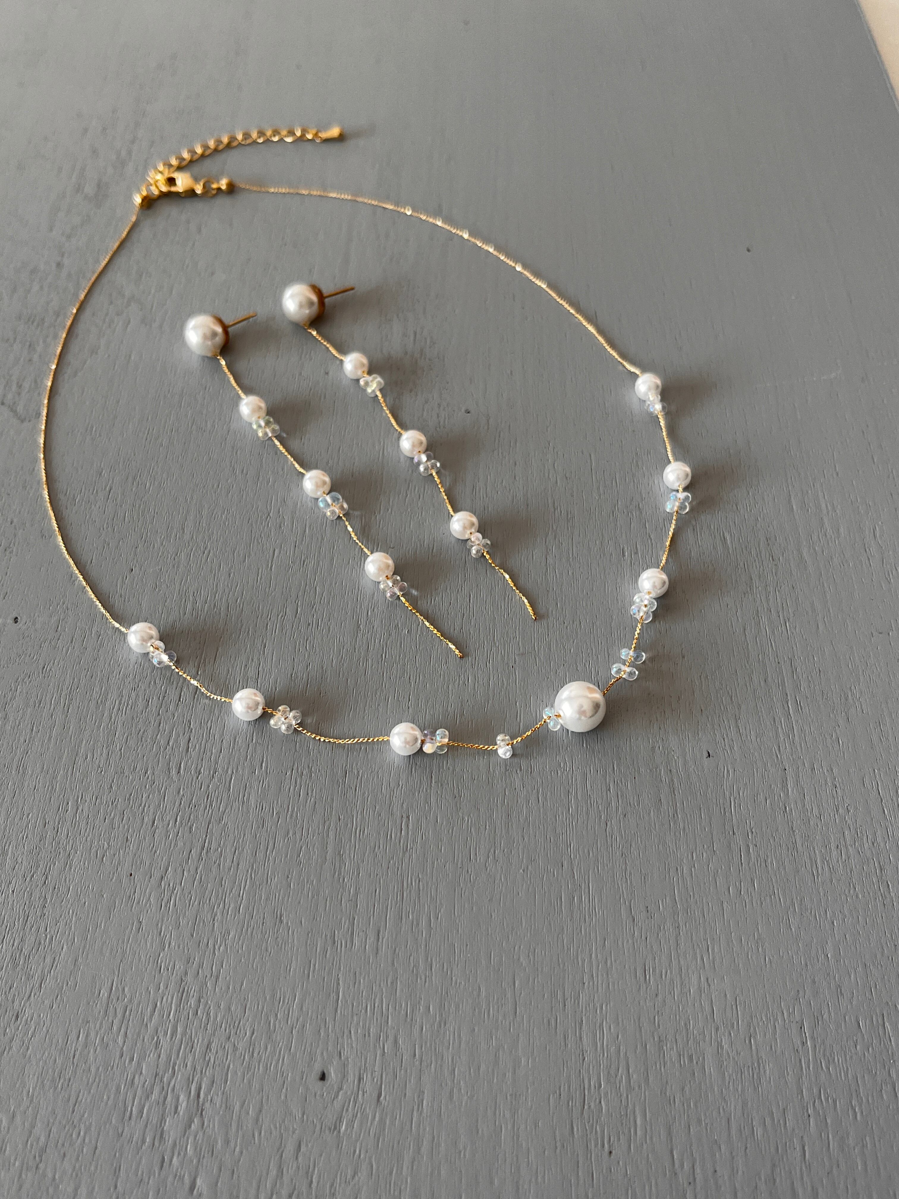 パールとクリアビーズを合わせた