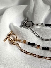 半分はビーズ、半分は太めのチェーンのデザインで、クールさ90%に仕上げたデザイン性のあるブレスレット。