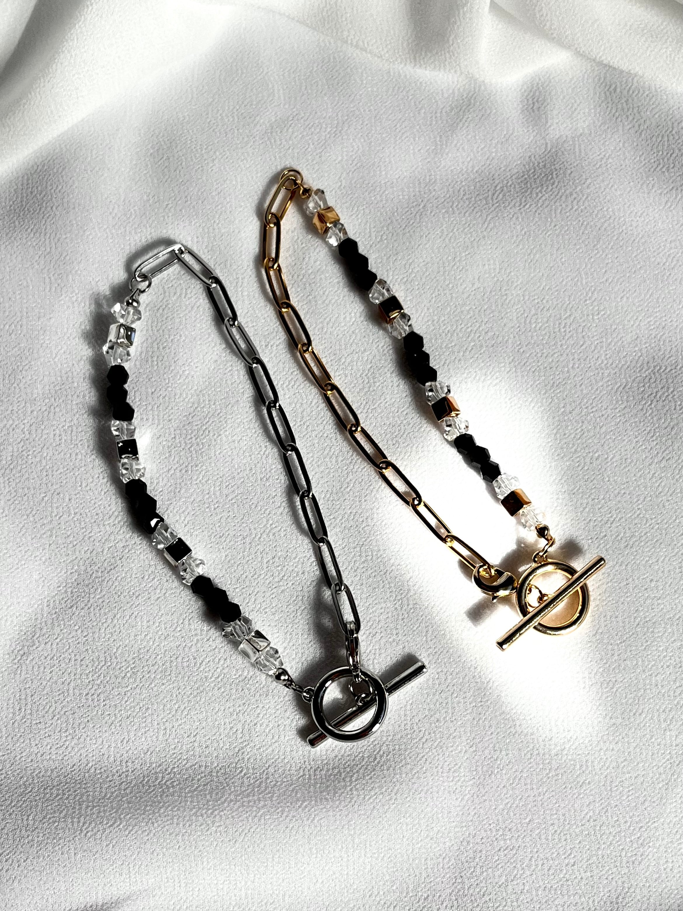 (クリアガラスビーズと黒ビーズを使った、太めチェーンのネックレス・チョーカー)
